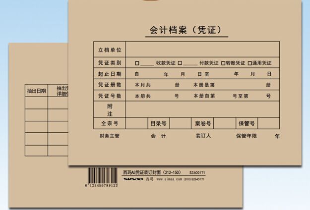 A5/A4一半凭证封面SZ600171,适用于A5/A4一半大小的所有凭证装订。