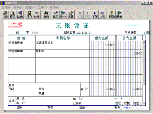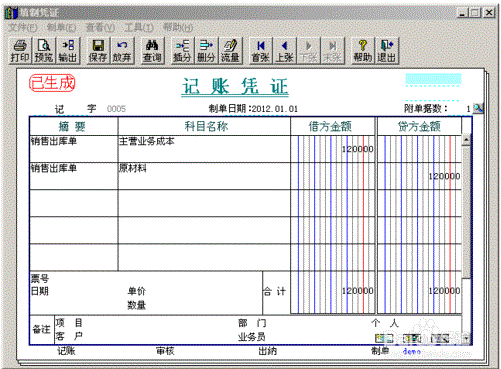 6、在核算管理中对销售出库单记账,并在“购销单据制单”中制单