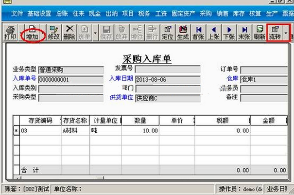 a.点击“采购入库单”-“增加”-“入库单”。