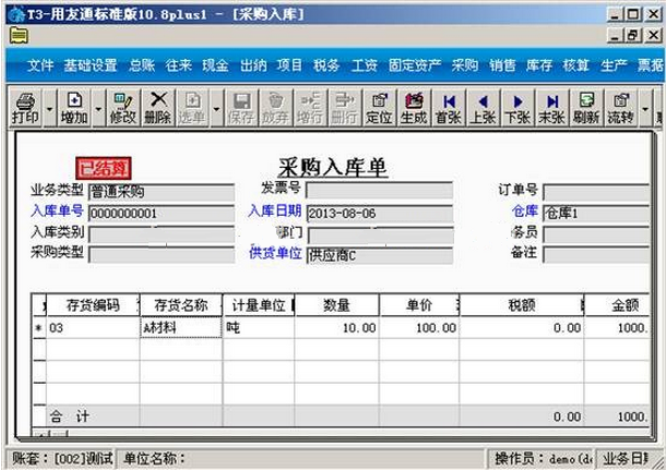 (2)用友T3财务软件的采购入库单是否在核算模块记账,采购入库单和采购发票都可以进行结算,但只有对采购入库单进行记账后才能进行“暂估入库成本处理”。