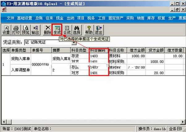 c.输入科目编码,点击“生成”。