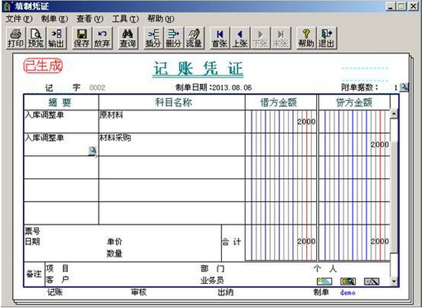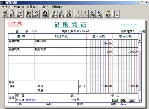 d.保存凭证即可。
