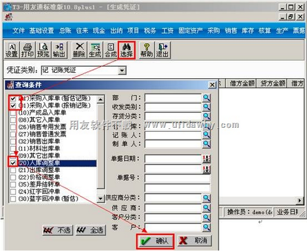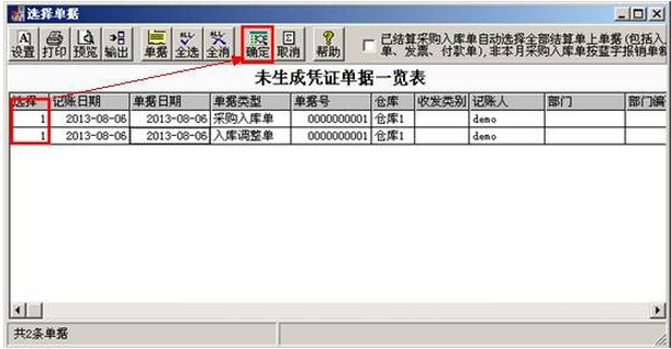 b.选中单据点击“确定”。