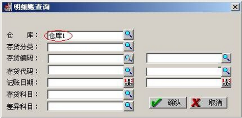 (8)点击“核算”-“账表”-“明细账”,选择仓库之后点击“确定”。