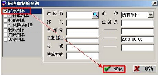 a.在核算模块点击“供应商往来制单”,选择“发票制单”点击“确定”。