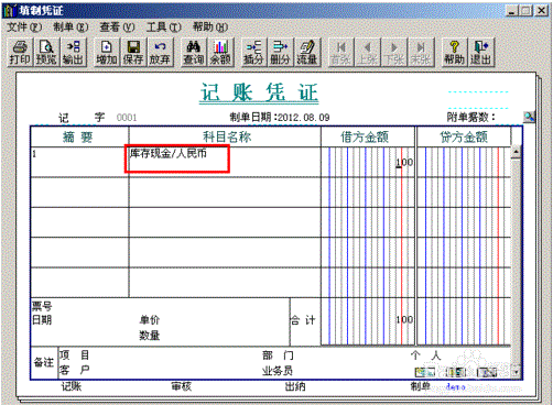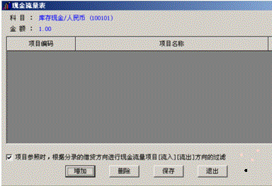 5、在填制凭证的时候,涉及到库存现金和银行存款科目时会弹出现金流量表