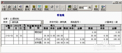4、查询明细账,可以算出采购货物的成本为30*60 = 180