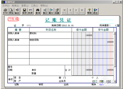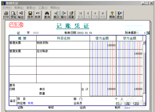 2、在核算模块对采购入库单进行正常单据记账(点击“核算”菜单 – “核算”-“正常单据记账”),然后通过核算模块的购销单据制单和供应商往来制单生成相应的凭证,通过购销单据制单对采购入库单生成凭证传递到总账
