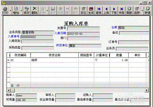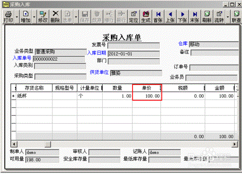 记账后查看采购入库单,采购入库单的单价带出参考成本