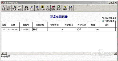 在核算管理中对采购入库单记账