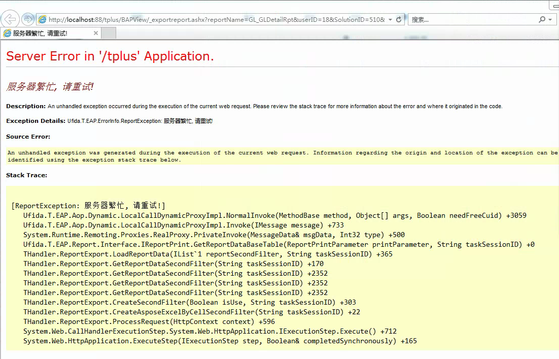 T+总账模块输出明细账的时候卡住,报服务器繁忙