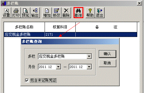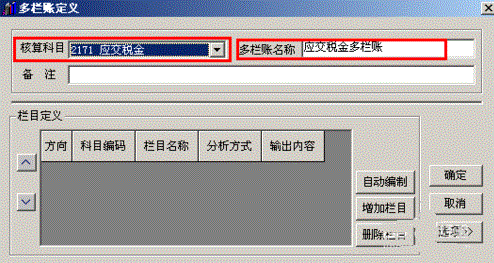 对于有多个明细科目的会计科目要以多栏账的形式查看,需要在软件中先定义才能查看