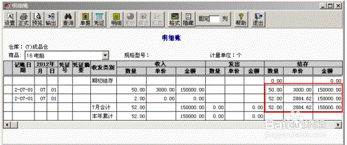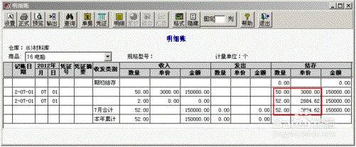 5、查询存货明细账,“电脑”数量增加,单价改变