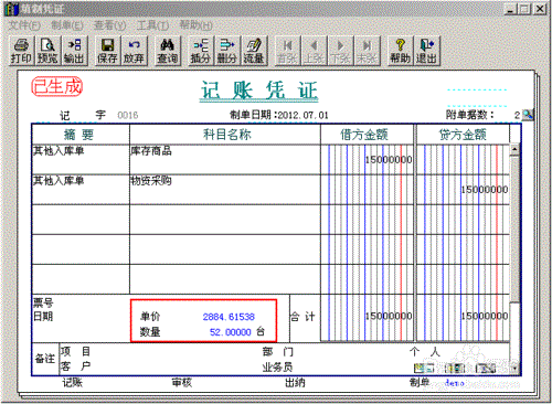 由于其他入库单没有单价不能生成凭证,和采购入库单合并制单