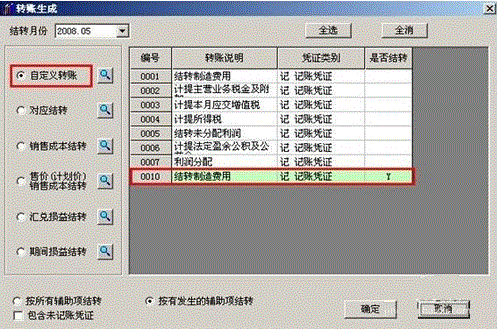 制造费用转到生产成本中,在用友通标准版中怎么利用自定义转账功能实现