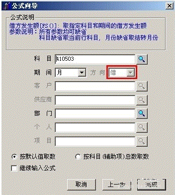 4、由于410501、410502和410503科目发生时一般放在借方核算,所以转出的时候要从借方转出,且取数公式为科目的借方发生数