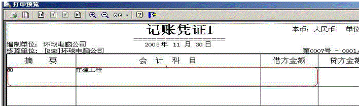 打印某一张凭证,只打出一行,且没有金额显示。