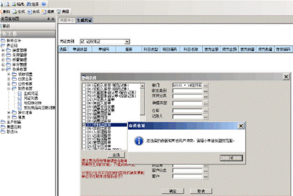 存货核算物料帐生成财务凭证,筛选物料帐单据提示有冲突,请缩小选择范围!