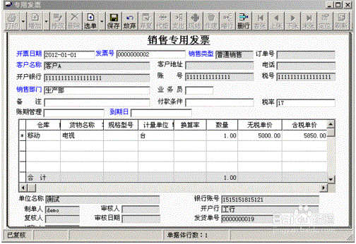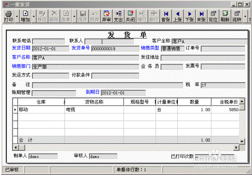 举例:2010年10月31日,某公司从我公司购买电视机一台,单价5000元(不含税)。销售部门下达发货通知并进行出库,开具销售票据。货物由某运输公司承运,我公司代垫100元运输票据。运费票据开具给客户,应收该客户5950元