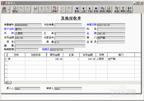 6、款项收到,填制收款单,收款结算时其他应收单也自动带出