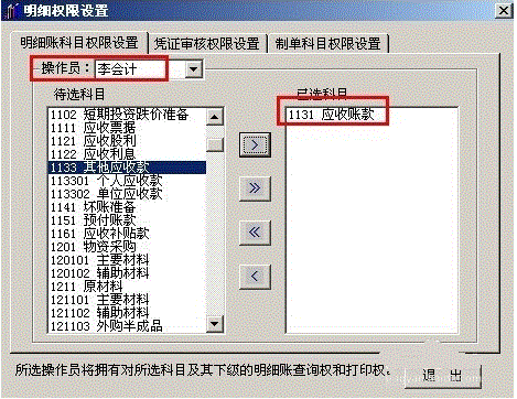 需要明确某一个员工对某一个科目的权限,该操作员对别的科目明细账没有权限查看