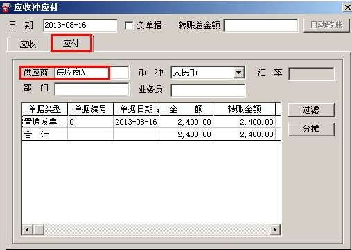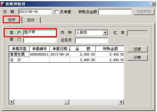 4、应收选择“客户甲”,点击“过滤”;应付选择“供应商A”,点击“过滤”;