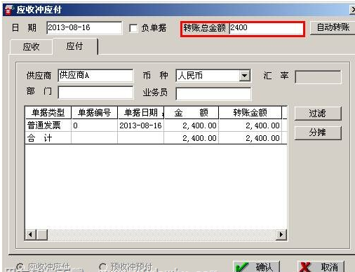 5、转账总金额输入要冲销的金额45000元,点击“自动转账”;
