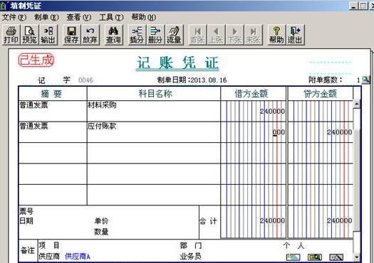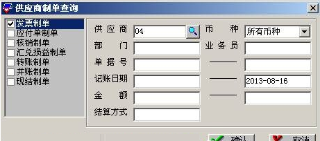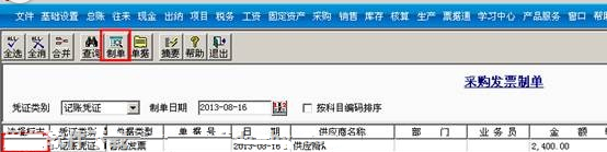6、在核算管理模块点击供应商往来制单,,选择“发票制单”,再选择供应商A,点击“确认”后并制单。