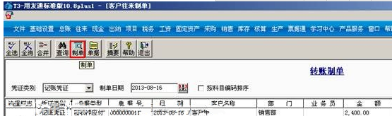 8点击客户往来制单,选择“转账制单”,供应商选择供应商A,点击“确认”后并制单。