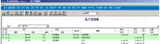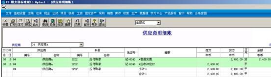 10、到往来管理里面查看供应商明细账和客户明细账,和总账的余额情况相同,如下图所示: