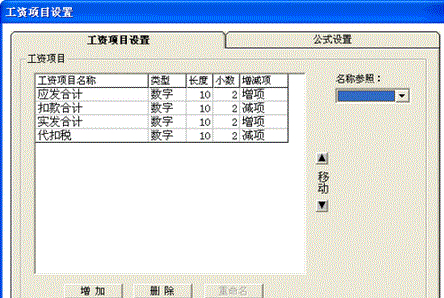 这时,会弹出“工资项目设置”对话框,如下图