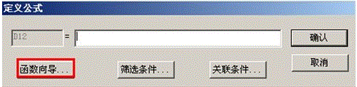6、在报表“格式”状态下,选中“采购部”公式单元,点击菜单栏中的“fx”按钮,在“定义公式”的界面,点击“函数向导”