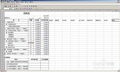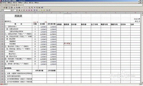 2、根据部门档案中的部门个数,在报表模板中保留“本月数”和“本年累计数”这两列的基础上,追加9列