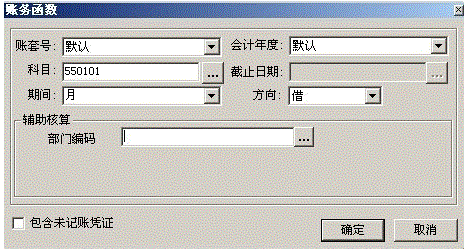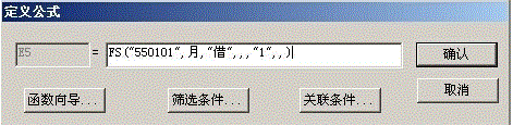 11、设置好了公式“FS("550101",月,"借",,,"1",,)”,此处“1”代表部门编码
