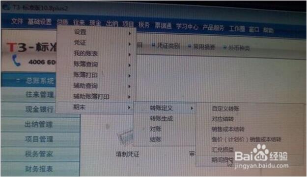 2.在T3软件的右上方找到”总账“,总账--期末--转账定义--期间损益结转。然后把结转到的科目输入进去,然后点击确定就行了。