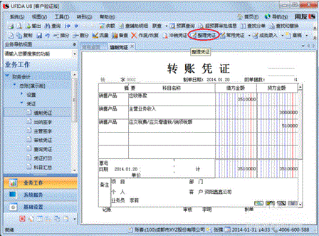 4、如图在“填制凭证”界面中点击工具栏里的“整理凭证”按钮。