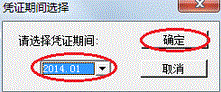 5、在弹出的“凭证期间选择”对话框中选择凭证期间为“2014.01”后点击“确定”。
