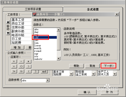 2.在弹出的“函数向导”界面选择函数“iff”,点击“下一步”