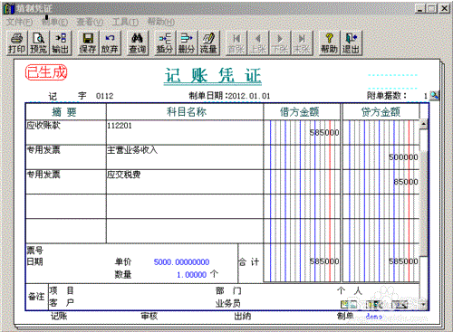 举例:2010年10月31日,某公司从我公司购买电视机一台,单价5000元(不含税)。销售部门下达发货通知并进行出库,开具销售票据。销售过程中发生招待费