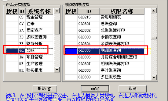(3)授予“明细账查询权限”: