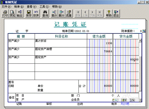 9、但是累计折旧的13.6已经记录到3月份新增的卡片中,所有应该将凭证修改为
