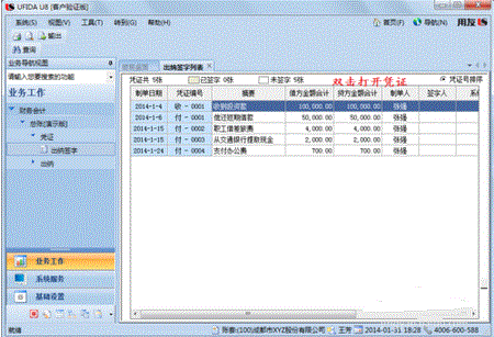 5、双击打开需要签字的凭证,例如这里双击“收字0001”号凭证。