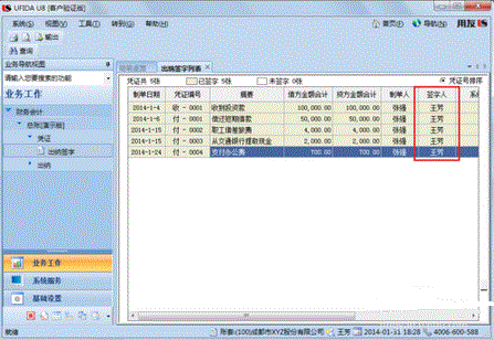 8、重复这样的操作将共五张凭证签字完成。然后关闭“出纳签字”。