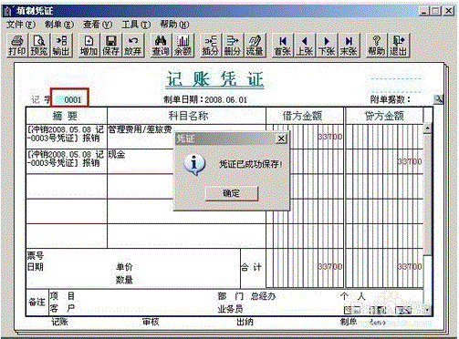 点击确定之后会生成一张冲销凭证,修改凭证号为0001