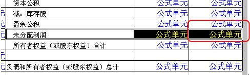 (2)找到未分配利润科目,双击公式单元进入【定义公式】界面: