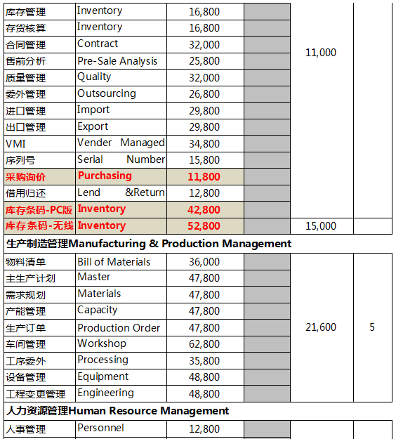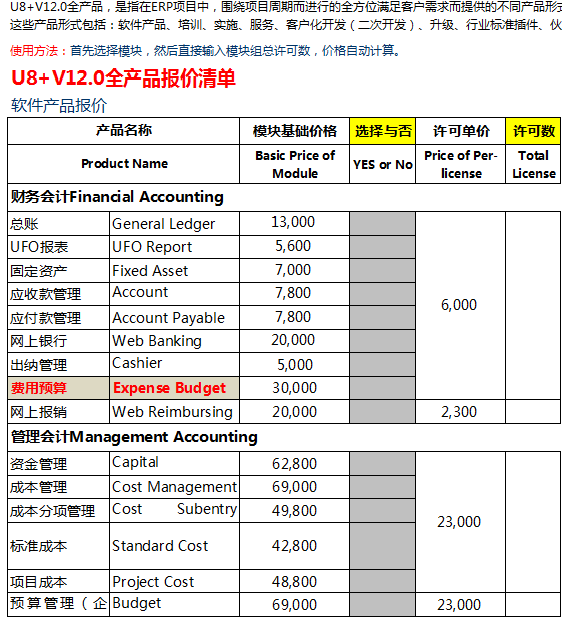 用友U8+V12.0官方全产品报价清单: