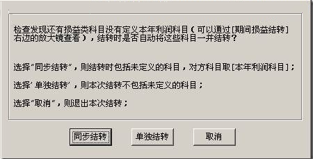 T3软件的期间损益结转时提示“同步结转”或“单独结转”?如下图所示: