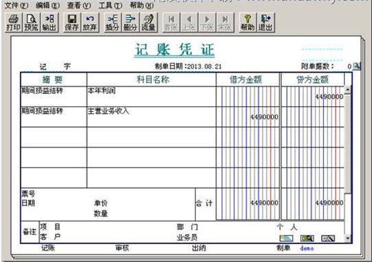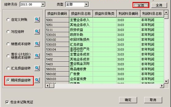 (4)生成期间损益结转凭证: