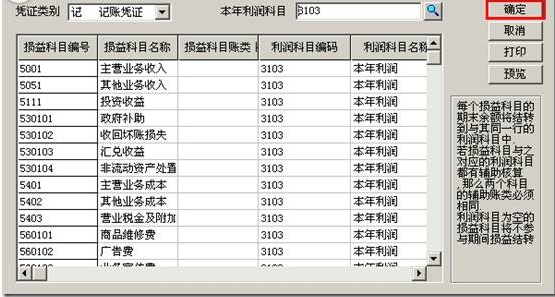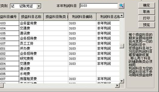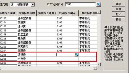 (2)找到“损益科目编码”为空的损益科目,选入“3103本年利润”科目: